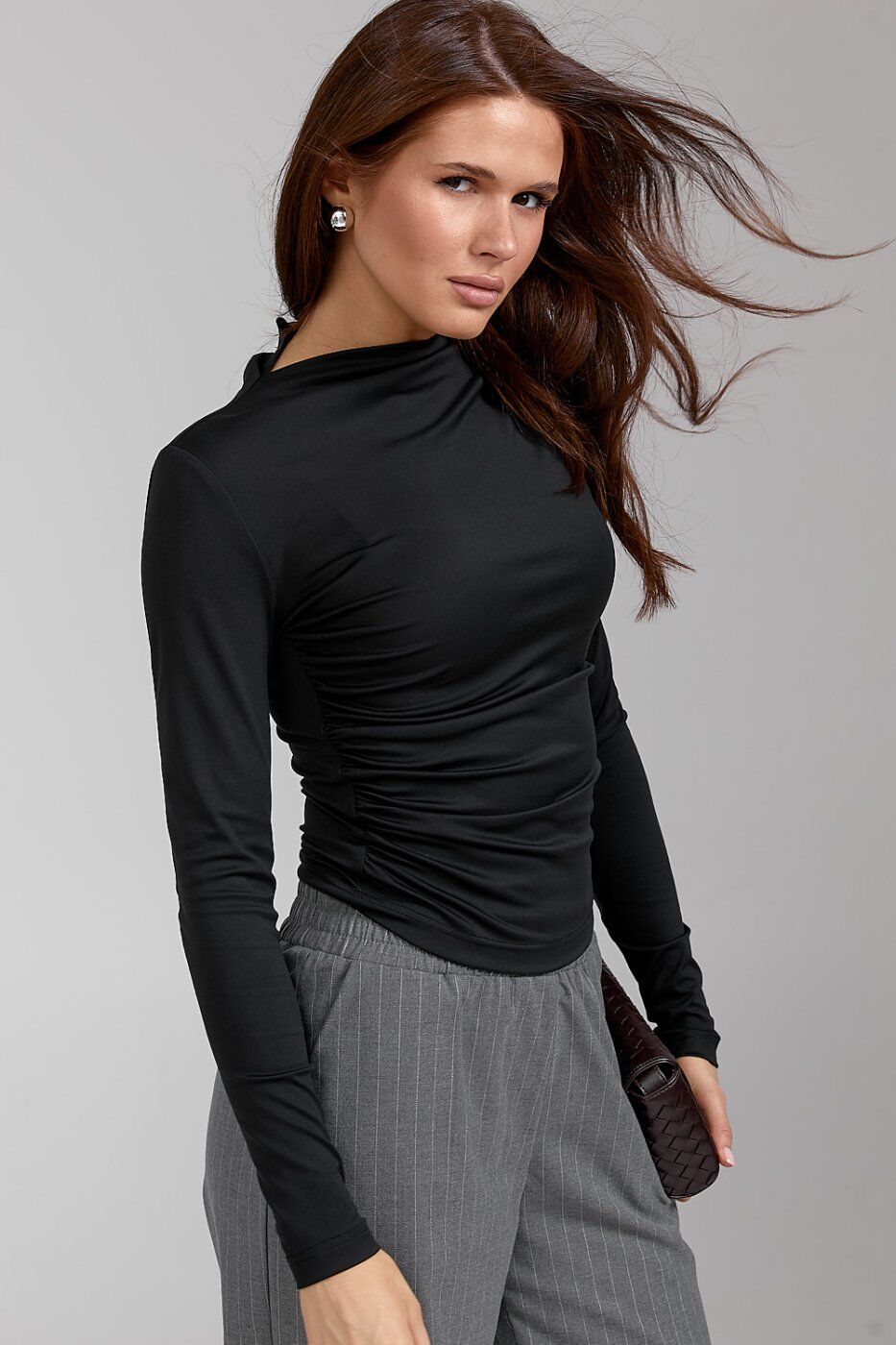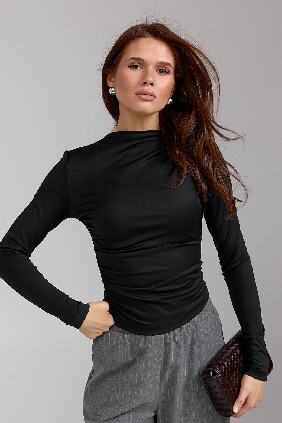 Жіночий лонгслів із драпуванням чорного кольору 584.1 от SL-ARTMON